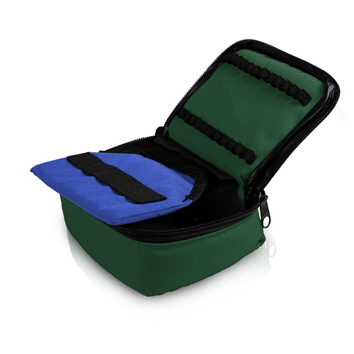 The outside of the case  has a transparent pocket for glovesor  catheters