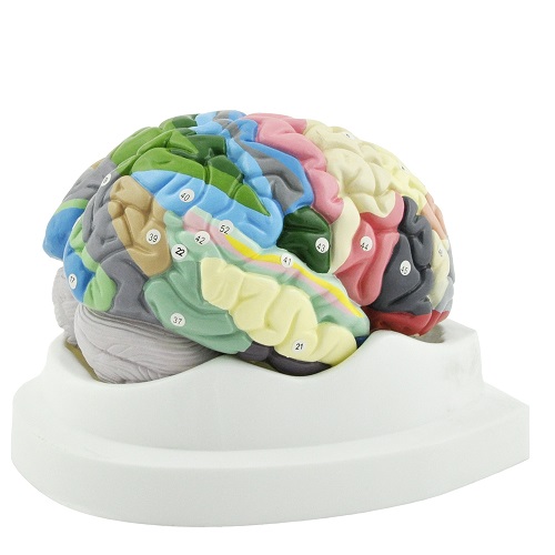 The brain model is coloured and clearly shows the different functional areas of the brain.