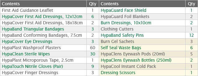 The First Aider Rucksack provides excellent portability. The content of the portable First Aid Kit complies with British Standard requirements for first aid kit.