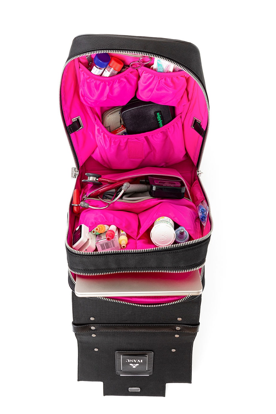 Its interior is created with an elegantly organised network of pockets to carry essential medical equipment.