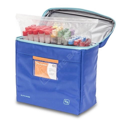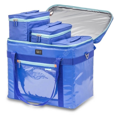High capacity isothermal bag that allows the transport, in an organized way and under optimal conditions, of 300 diagnostic samples and 36 urine samples, from the extraction center to the laboratory.