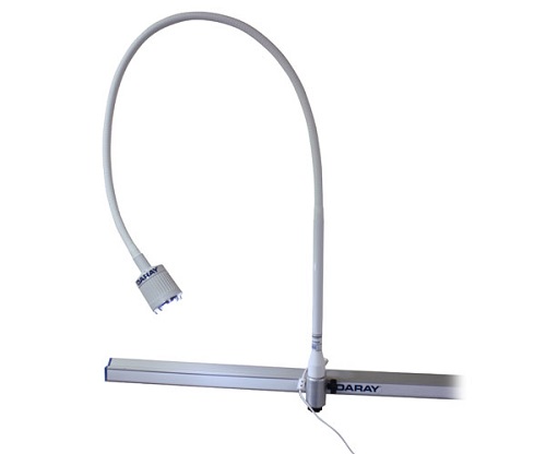This examination light has a flexible gooseneck, remains stationary once positioned.