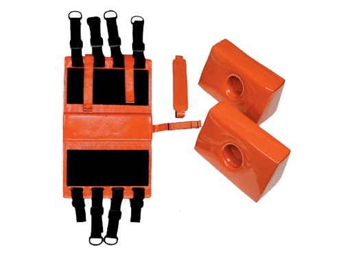 Composed of two head blocks and two straps to prevent any head movement of the injured person during transport.