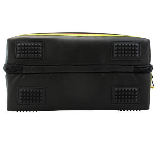 Robust pyramid feet on the underside and back allow the bag to be stood up or laid down safely and securely on any surface.