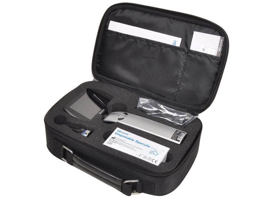 MD Scope with 1 camera probe 47 mm Ø 4.2 mm , mini USB cable set,  12 disposable specula , internal Li-ion battery and charging cradle and  carrying case