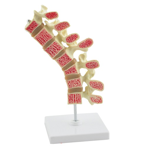 The osteoporosis model shows a cross-section, which illustrates the vertebrae on one side and the intervertebral discs on the exterior.