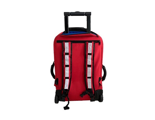 2 refractive strips, pull-out trolley handle, pull-out padded shoulder-straps