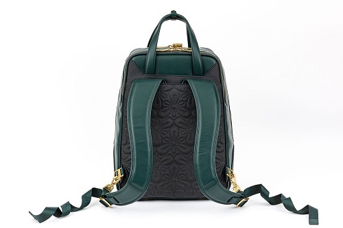 It is lightly padded and has adjustable backpack straps that allow it to be carried ergonomically when walking or cycling but may be tucked away neatly when desired to enable the bag to also be carried as a tote.