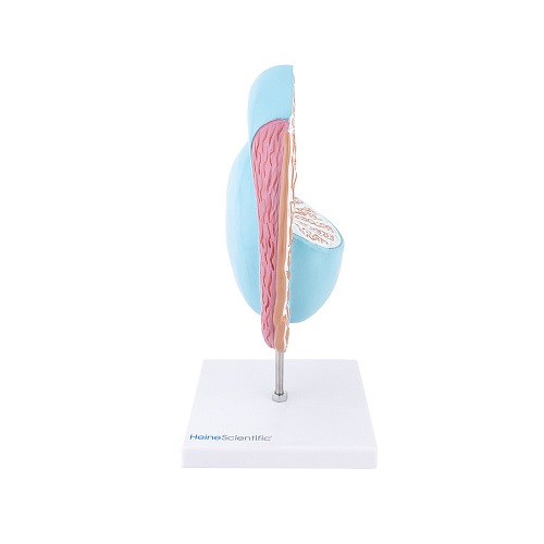 This model shows the internal and external structure of testicles and the epididymis.