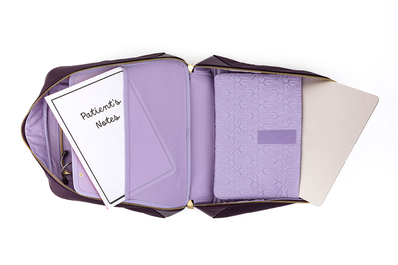 Designed to suit the needs of women working in healthcare this  stylish and functional doctor's bag offers a sophisticated way to carry all essential medical equipment and personal items.