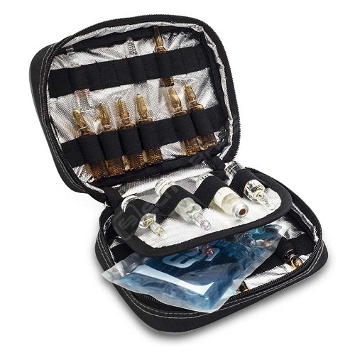 Front pocket with 2 net pockets and 4 detachable compartments (with inner dividers) with the international color code.