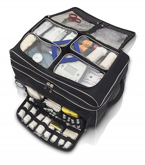 Trolley bag that  is designed to facilitate the transport of  first aid and medical equipment and is suitable for sports physiotherapists