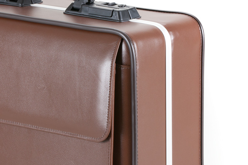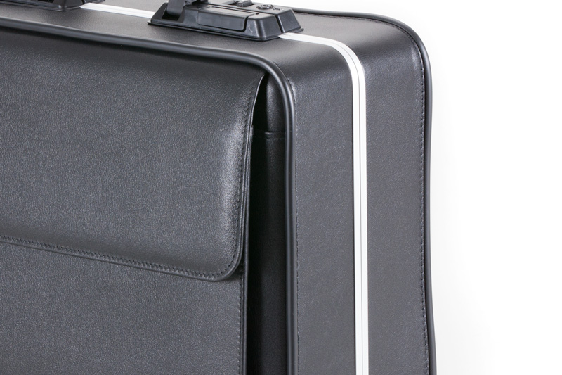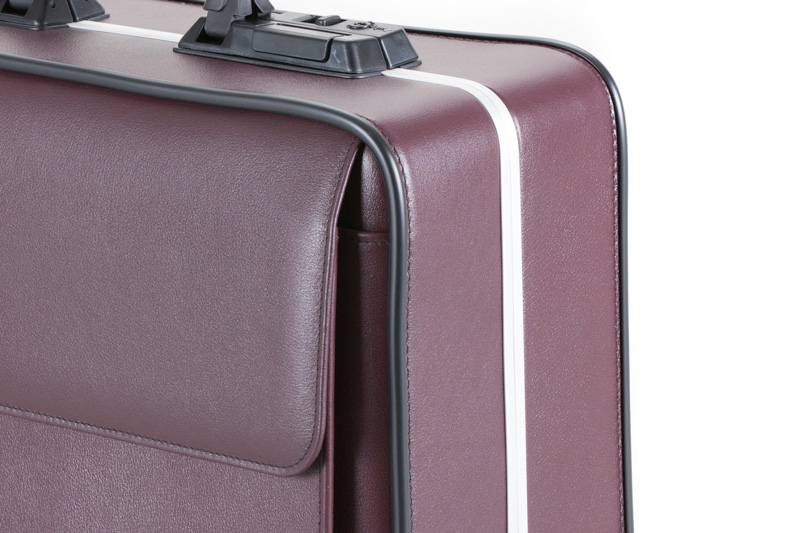 A rigid doctor's case made of  genuine leather with an aluminium profile frame and surrounding plastic rim protection