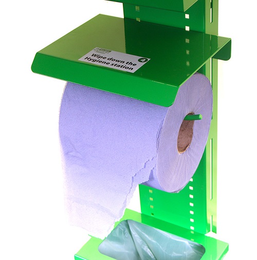 Step 4 – Wipe down the hygiene station. Using the paper provided (and a little sanitiser if required) the station can be wiped down by the user ensuring it is ready for the next user.