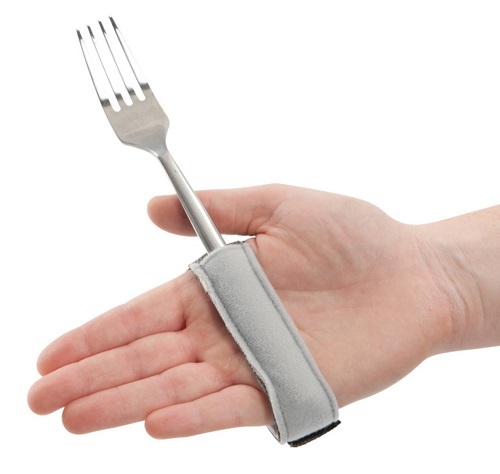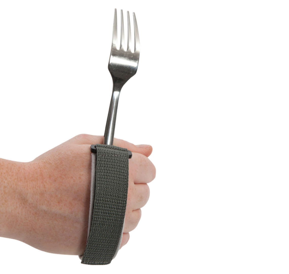 Comfortable, easily adjustable, strap handle that provides a secure grip on a variety of different cutlery