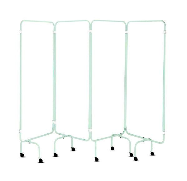 White screen frame with  four blue plastic panels  that offer full screen coverage for complete privacy